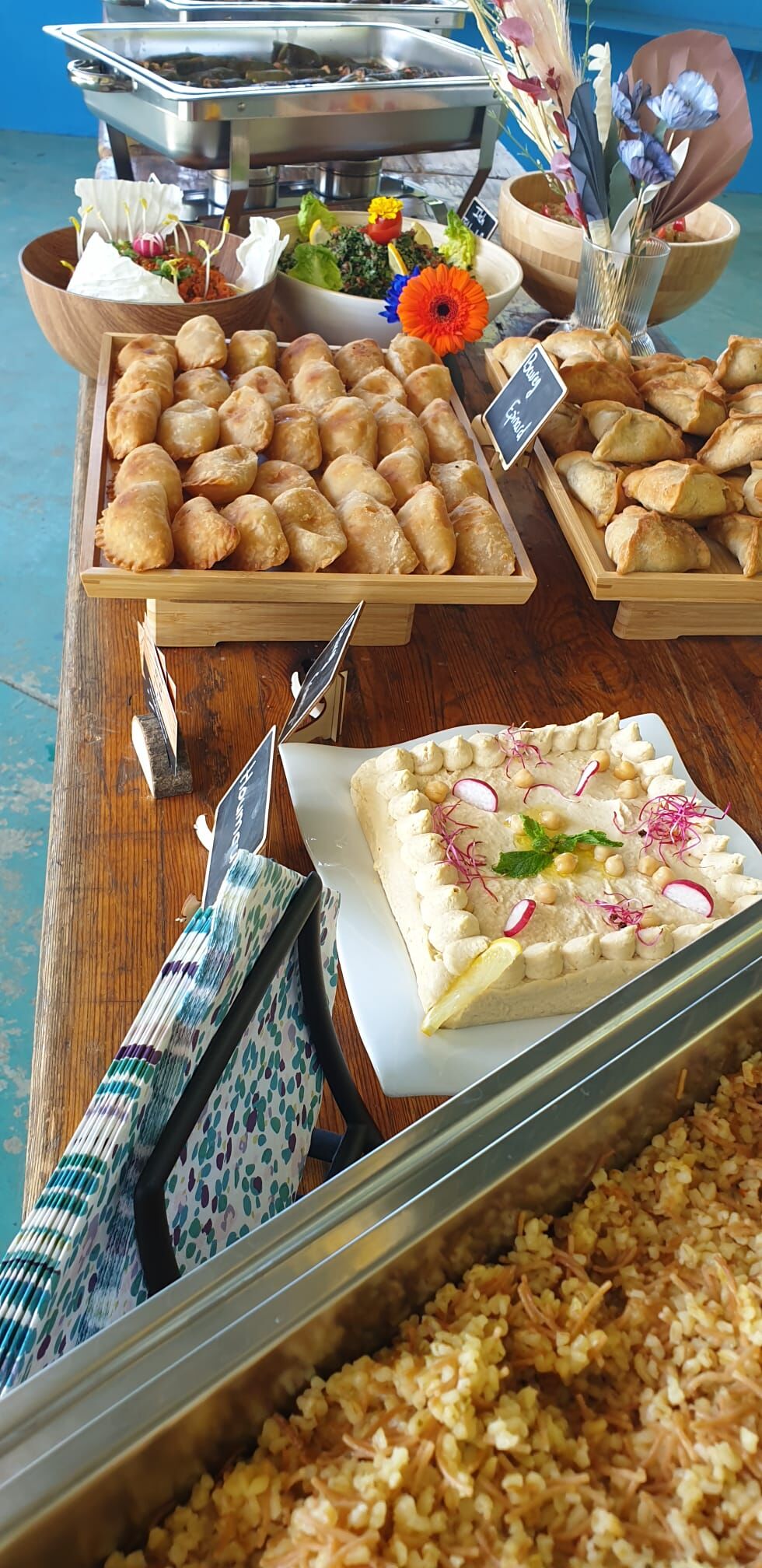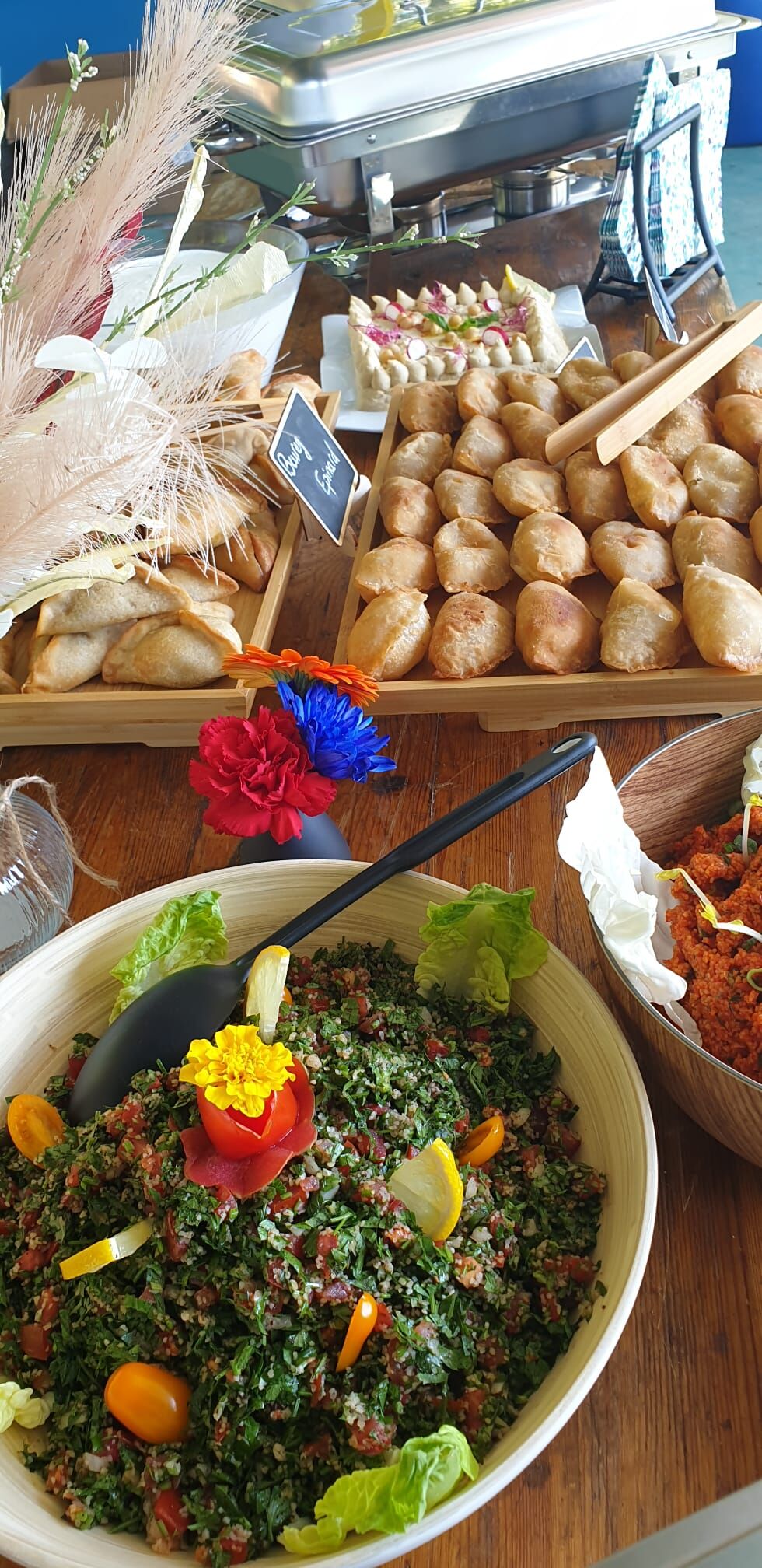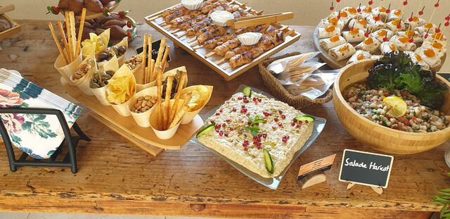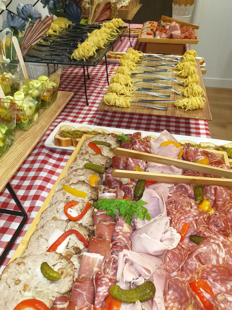 Nous proposons également un service traiteur sur mesure pour vos événements : réceptions, repas d’entreprise, buffets, mariages, anniversaires, plateaux repas et plus encore.